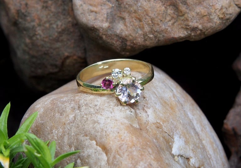 Do prstenu, který dnes představuju, jsem zasadil krásný morganit. Morganit je zajímavý drahokam. Na první pohled může jeho jemná růžová barva vyvolat dojem křehkosti, dívčí naivity, dojem, kterému říkám s trochou nadsázky "Barbie efekt". Nicméně, opak je pravdou. Pokud hledáte nástroj pro posílení ženskosti v sobě, sebevědomé, necenzurované ženskosti, živelné ženskosti, která, ale nepostrádá vřelost a jemnost, těžko budete hledat lepšího pomocníka.
